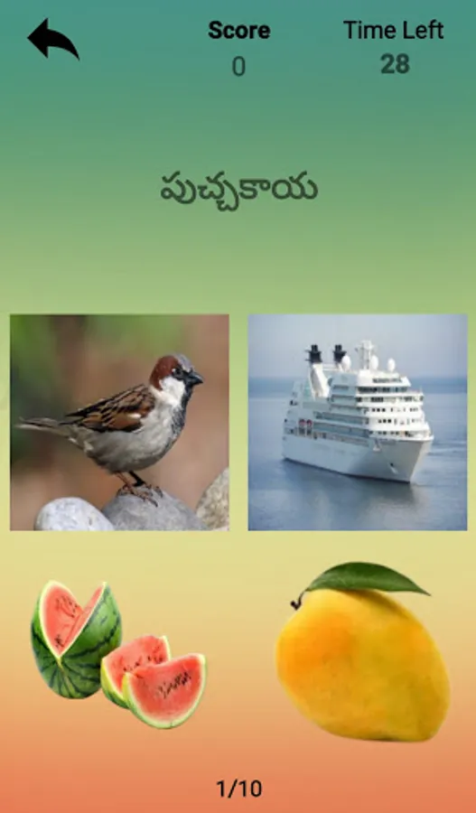 This application contains 10 questions in telugu having pictures as their options and correct option is the picture related to the word in the specific question.
