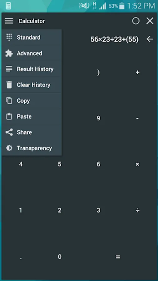 • Results History (Stores expressions and answers. Tap on any answer to use it in expression)
