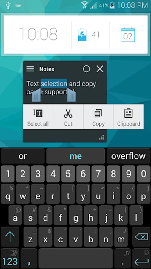 • Share text and accept shared text from other apps.