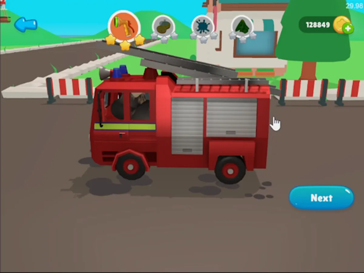 Fun cars: fire engine, double-decker bus, ice cream truck, excavator, dump truck, cement mixer, forklift, tractor, and more