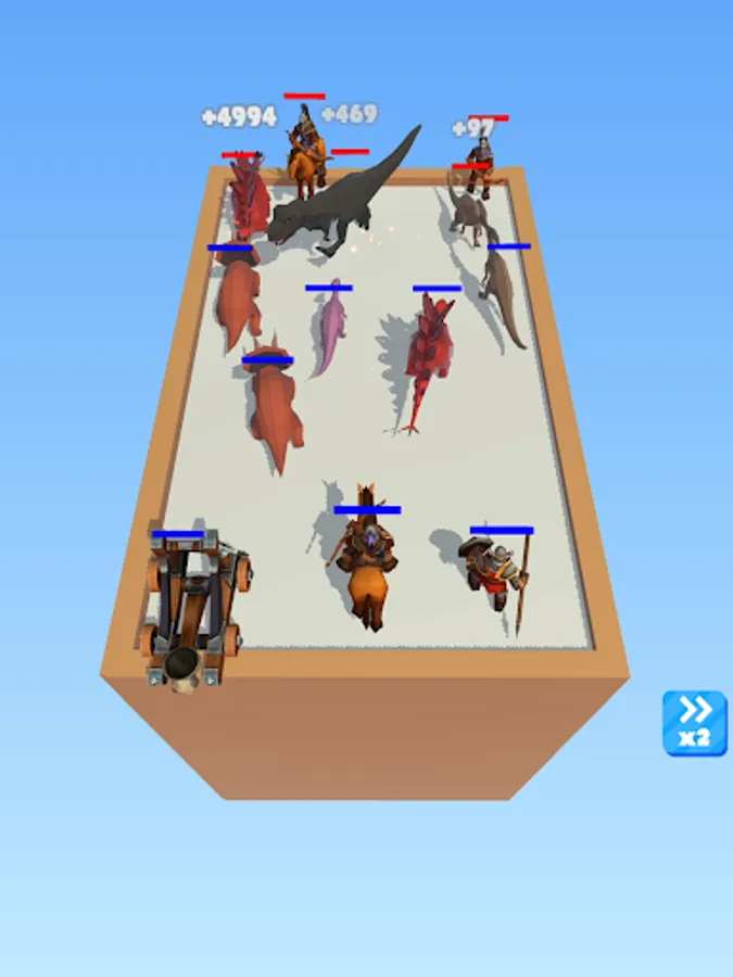 Use your strategy to merge dinosaurs and warriors, creating a formidable team to fight against enemies like dragons, monsters, T-rex, and other fierce dinosaurs. Higher-level monsters and warriors deal more damage, so plan your upgrades wisely.