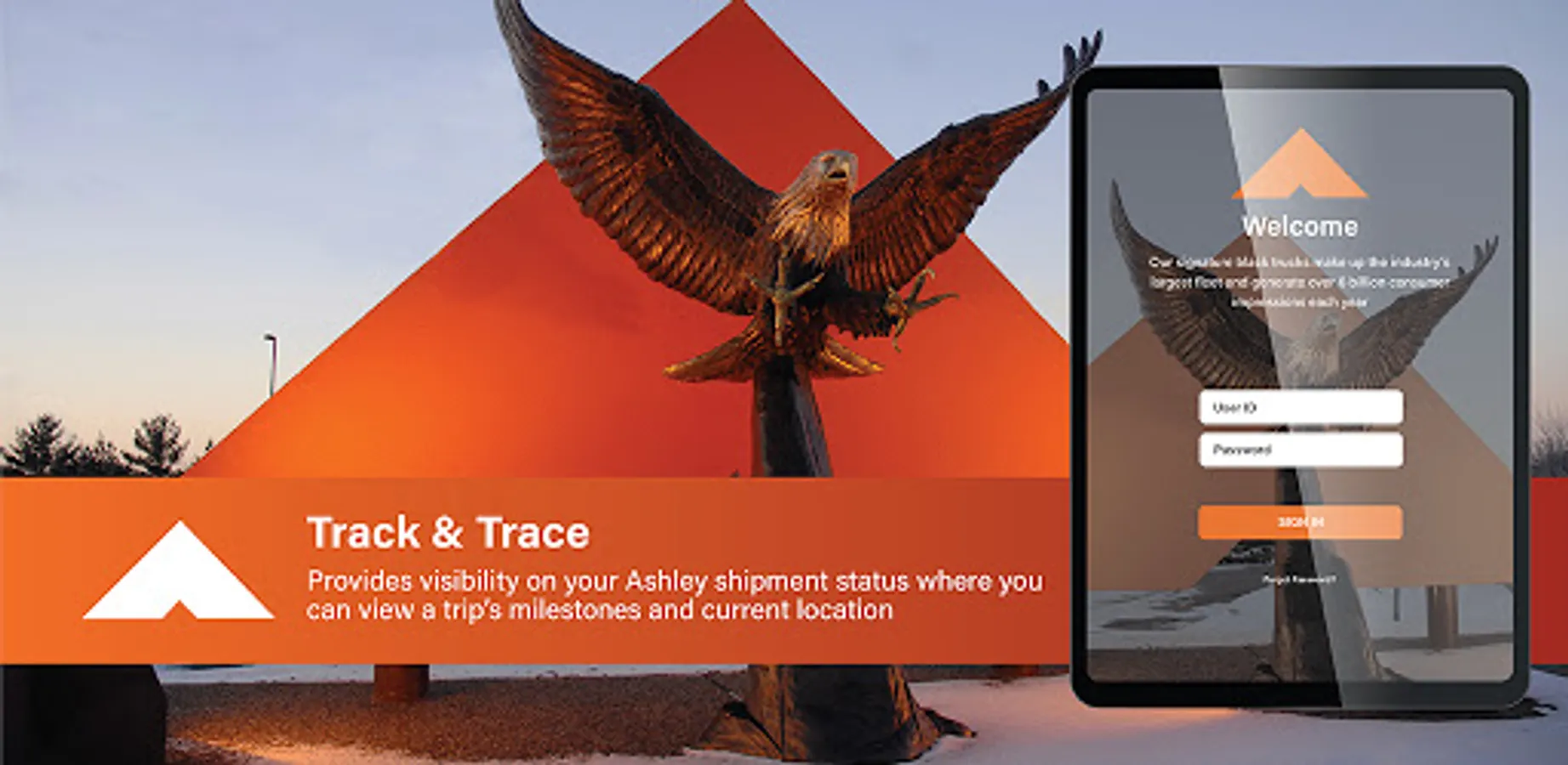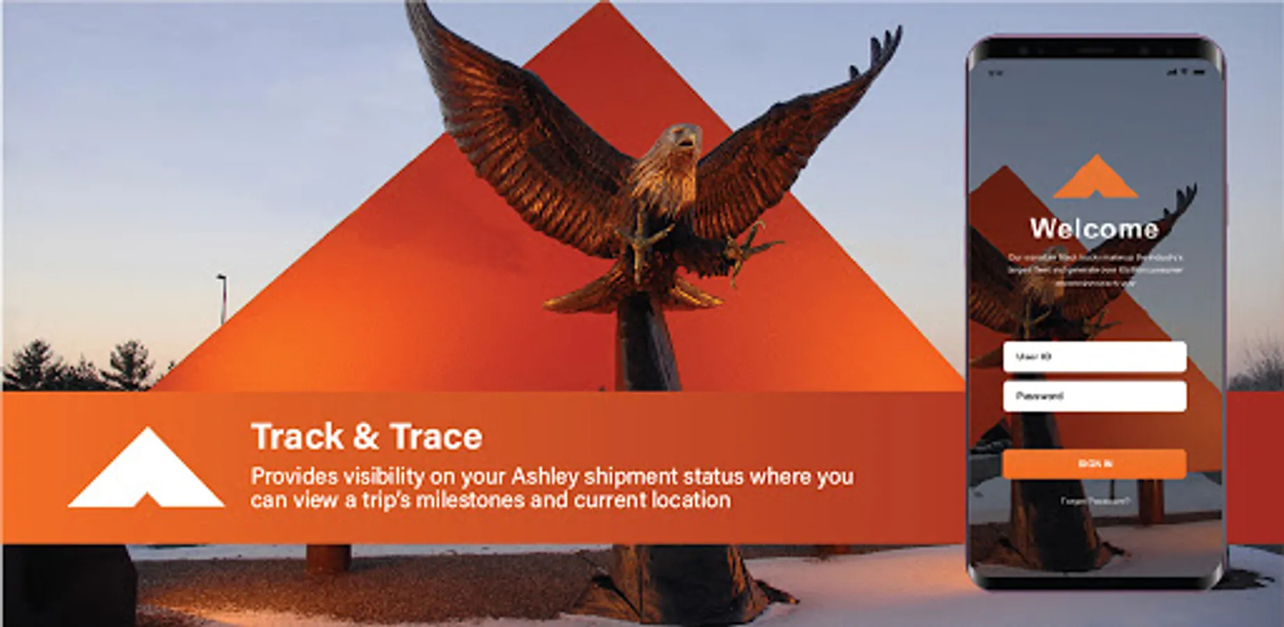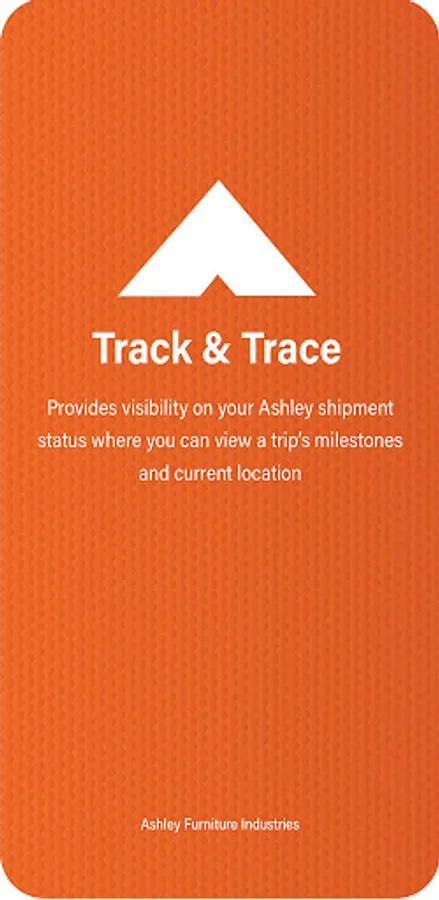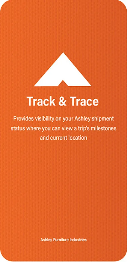 Track and Trace is an app that provides visibility on your Ashley shipment status where you can view a trip’s milestones and the shipment's current location.