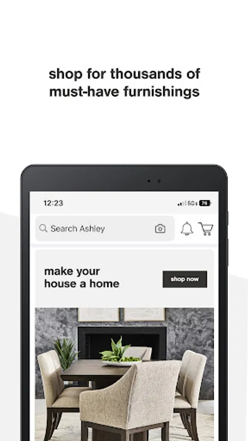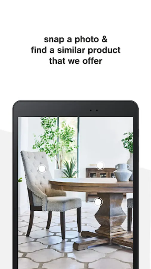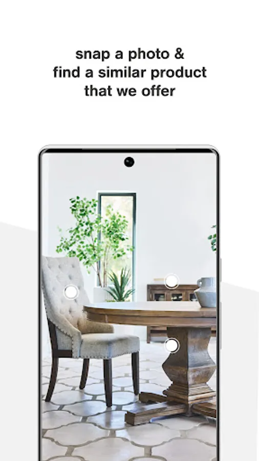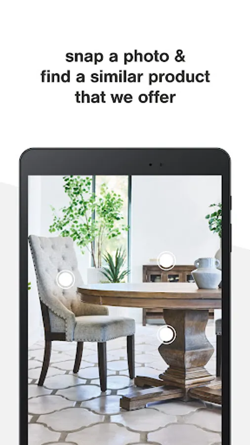 Our visual search feature lets you take a photo right in our app, or upload from your library, and instantly match what’s in your photo with our wide assortment of the latest home furnishing styles.