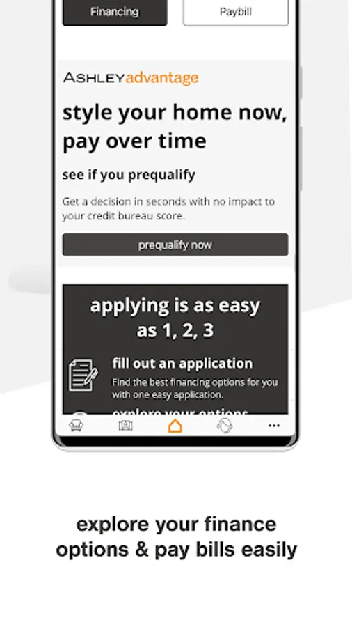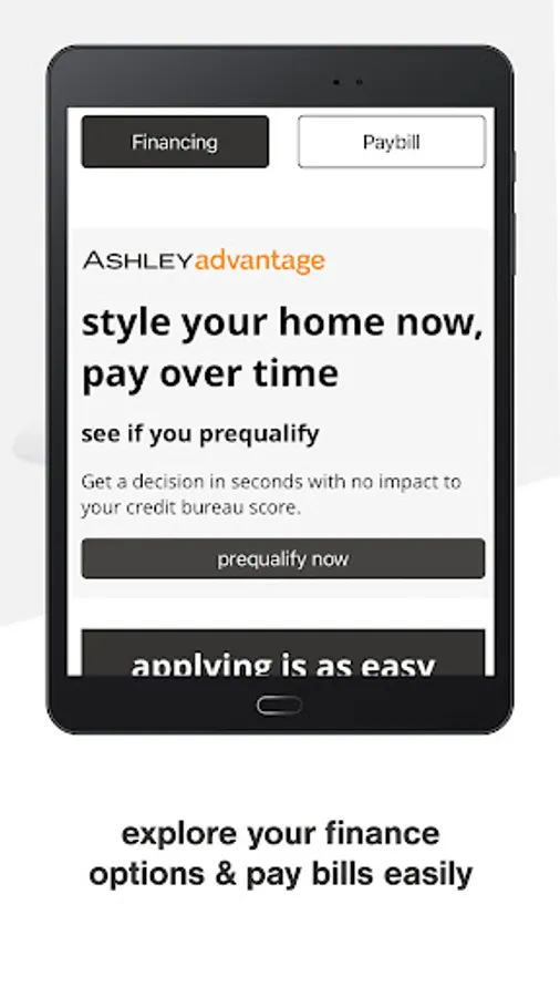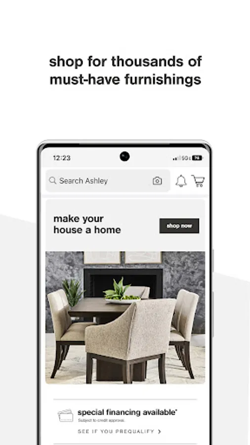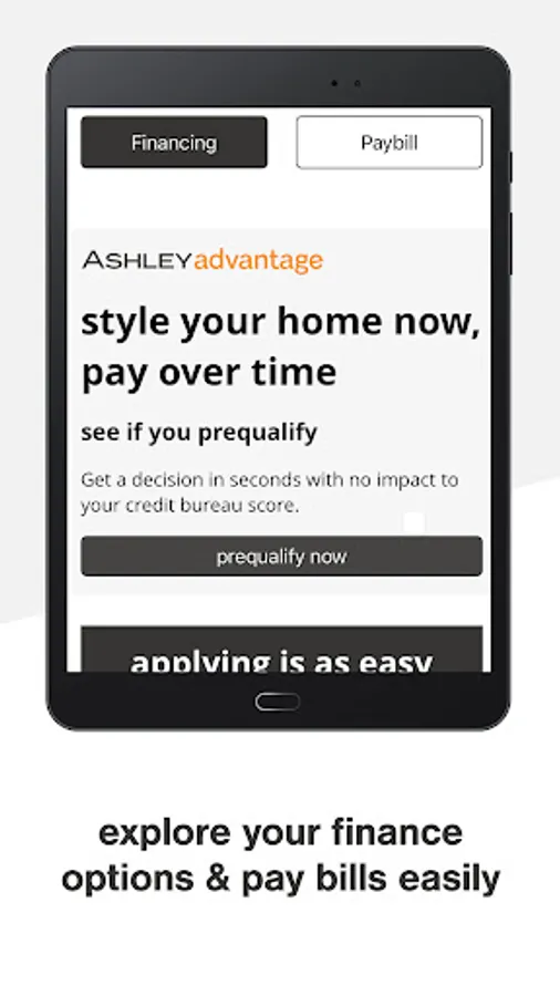 Ashley offers friendly consumer financing. Apply in the app, online, or visit an Ashley location to view finance options available to you.