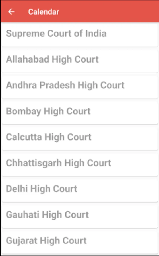 It also includes all the important links (cause list, display board, calendar and website) of almost all the Indian Courts (Supreme Court and State High Court) :