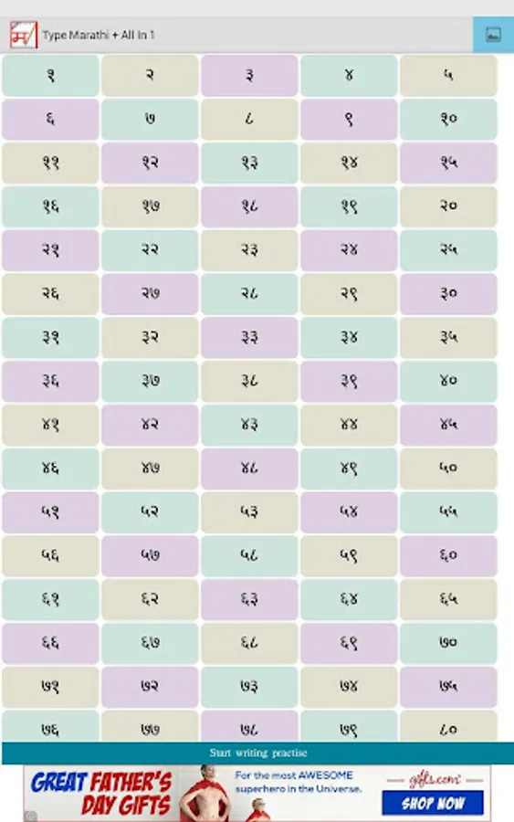 7. Tool to teach and learn Marathi Alphabets and Numbers. Numbers upto 100. Ka-kha, a , aa etc.