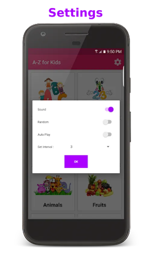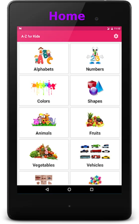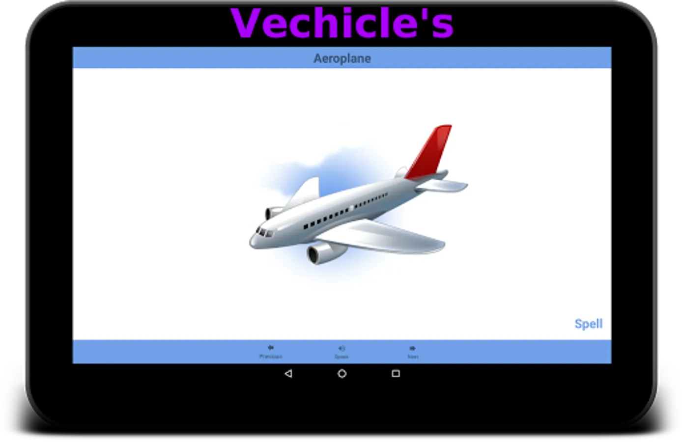 This is a simple voice based application for your child to learn the Alphabet, Numbers, Shapes, Colours, Animals, Fruits, Vegetables, Vehicles and Body Parts using flash cards!