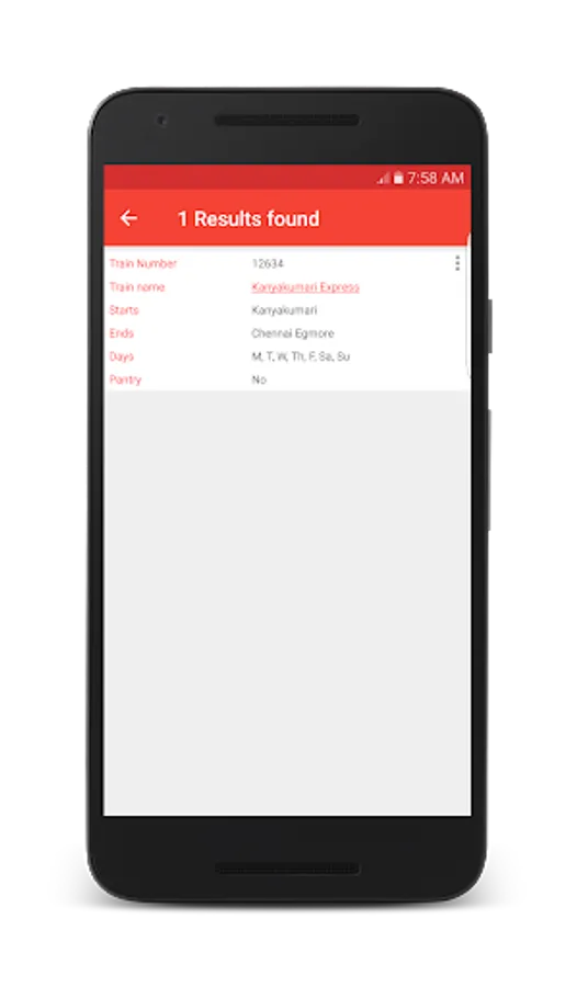 * Search details of all Trains in India(You can see details like Route and Schedule, Travel Time, Kilo meters travelled, Pantry, etc )