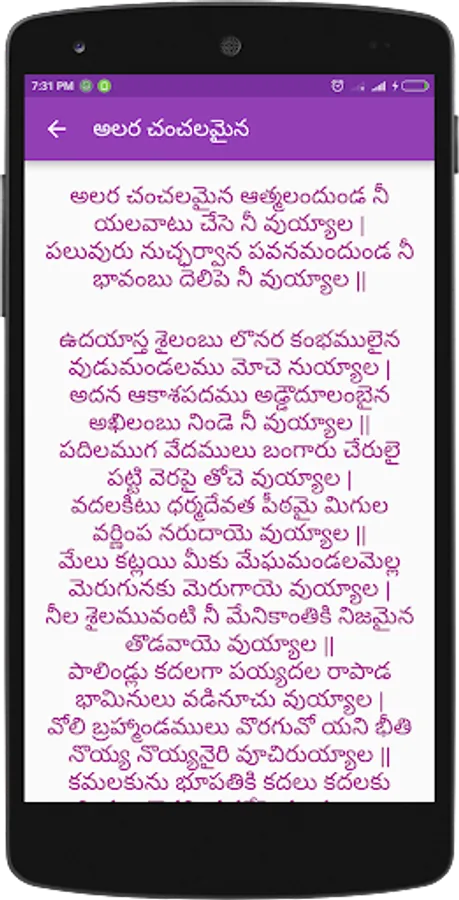 Sri Tallapaka Annamacharya (1408-1503) the saint composer of the 15th century is the earliest known musician of India to compose 32k songs called “sankIrtanas” in praise of Lord Venkateswara.Lord Vishnu manifested Himself as Lord Venkateswara in Tirumala Hills to protect the Dharma from decay in the Current Age (Kali Yuga). Annamacharya was born as the incarnation of Hari Nandakam(sword) to promote Dharma through his powerful Sankirtanas (devotional songs).