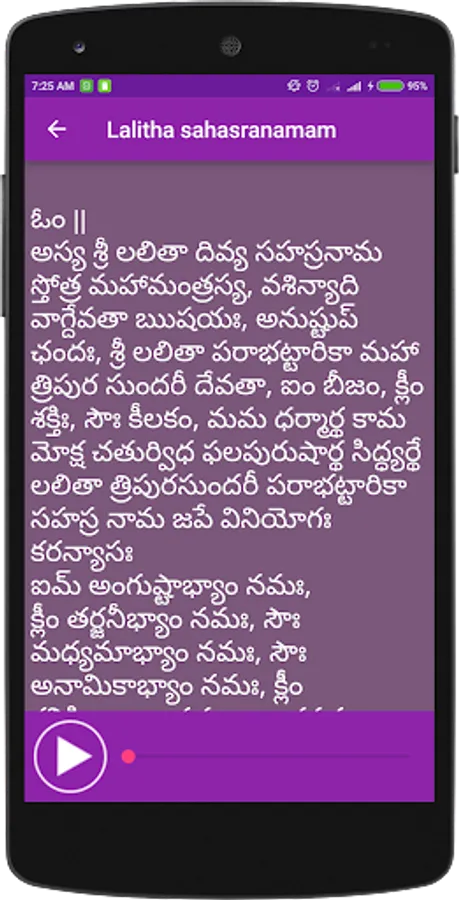 2] Regular chanting of Sree Lalitha Sahasranama is as beneficial as visiting religious places, taking bath in a holy river, offering food, offering materials. It is an indirect blessing to those who cannot do these kind of offerings to God.