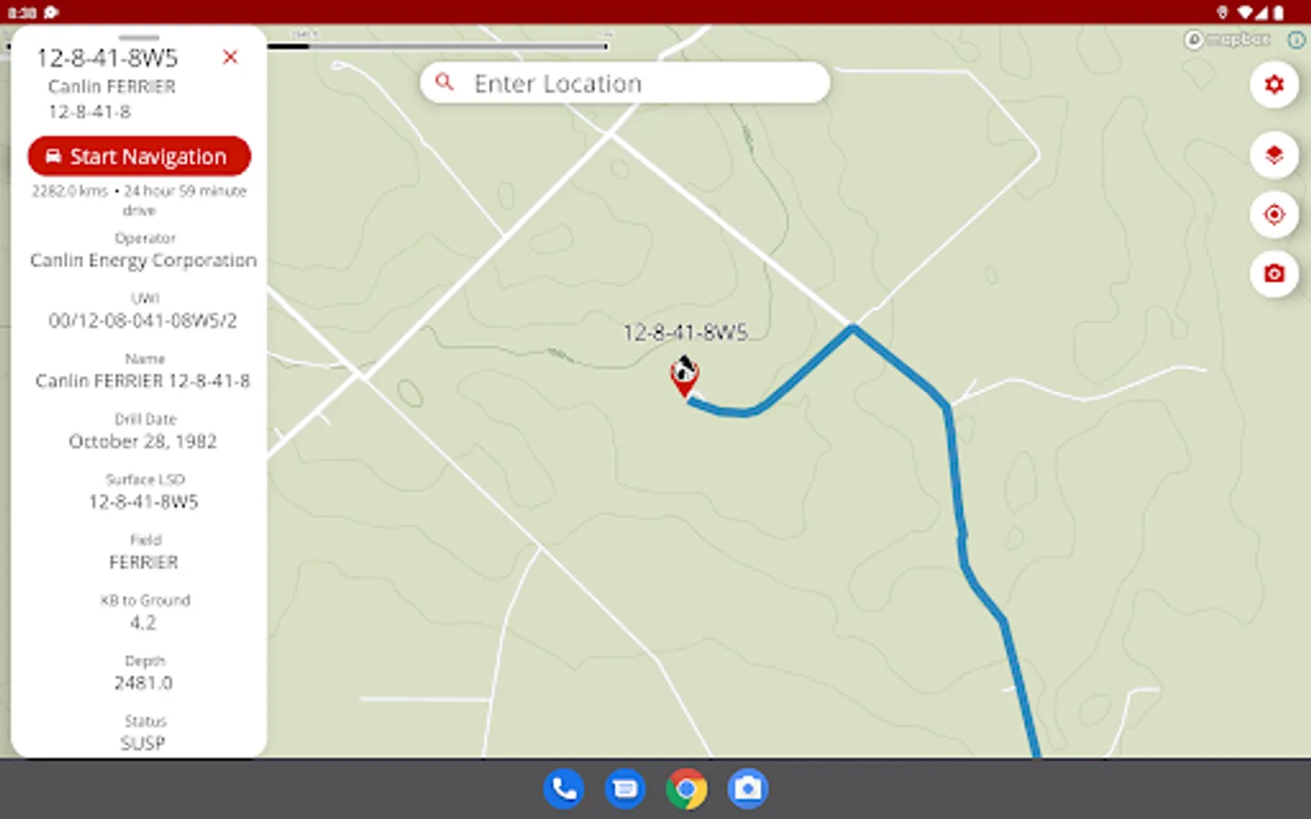 This multifunctional lease locator app makes getting to work in the oilfield a breeze. Simply enter the legal land description, name, or API number to view the surface location OR drop a pin on the map to view location and well info (if vertical). The location can be opened in Apple or Google maps for turn by turn navigation. Change the origin location to see step-by-step directions to location from the nearest town, useful for putting together ERPs or providing visitors directions.