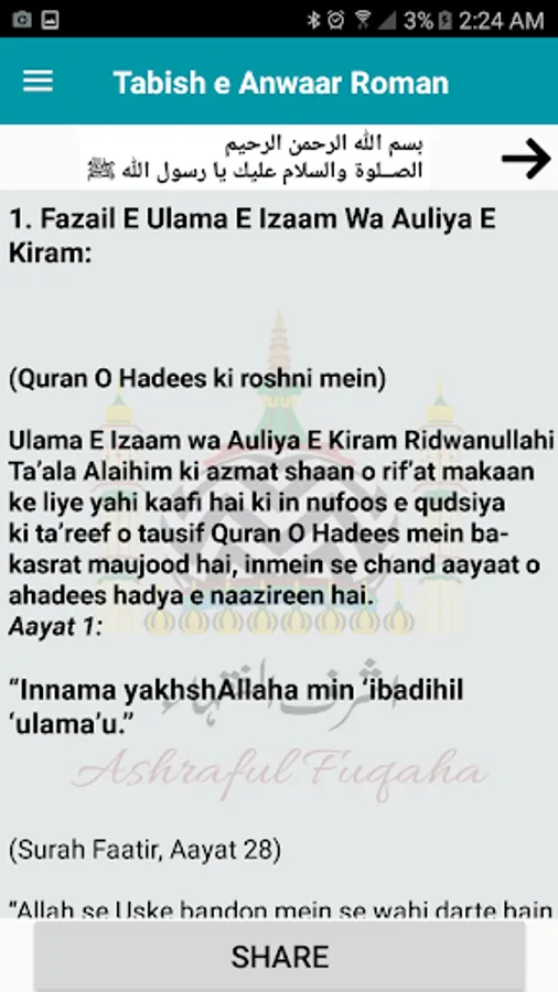 The family into which Hazrat Ashraf ul Fuqaha was born was studded with highly learned and spiritually inclined diamonds. This provided a great platform to Hazrat Ashraf ul Fuqaha and helped shape his impeccable personality. The Shajra e Nasab or Pedigree chart of Hazrat Muhammad Mujeeb Ashraf Qibla Hafidahullah is as follows: