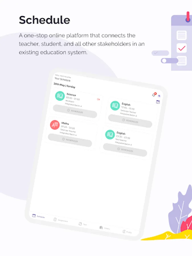 · live video streaming sessions for seamless student-teacher interaction with real time audio and
