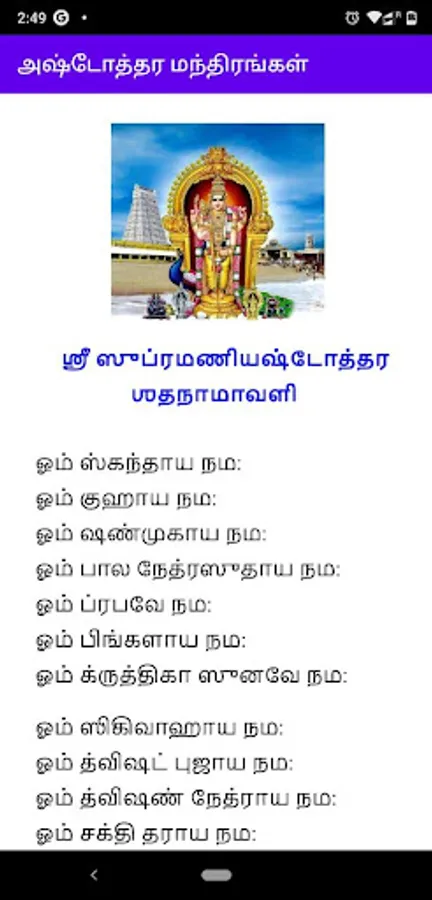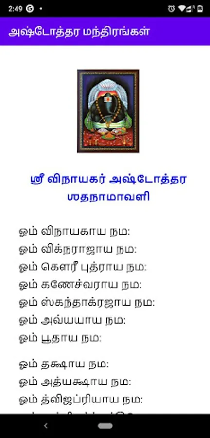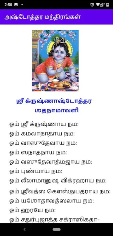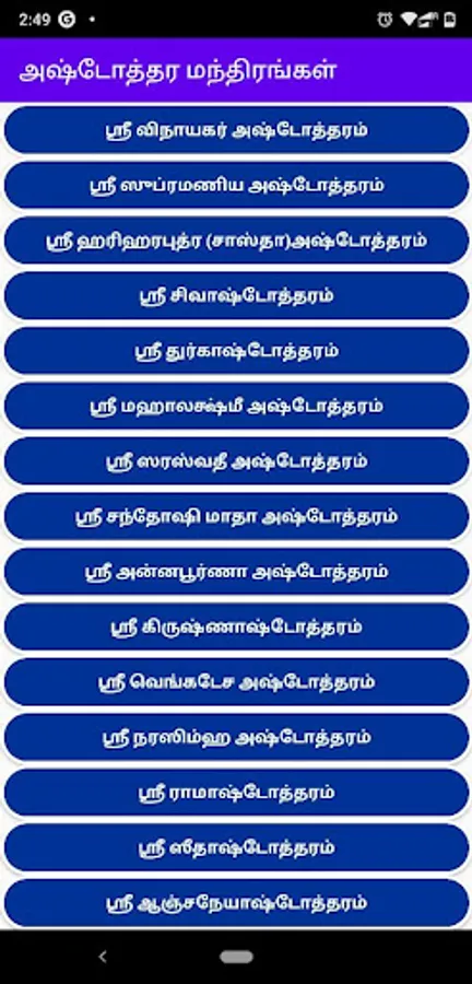 This App contains the 108 Holy Names (Called as Ashtotra) of the following Gods