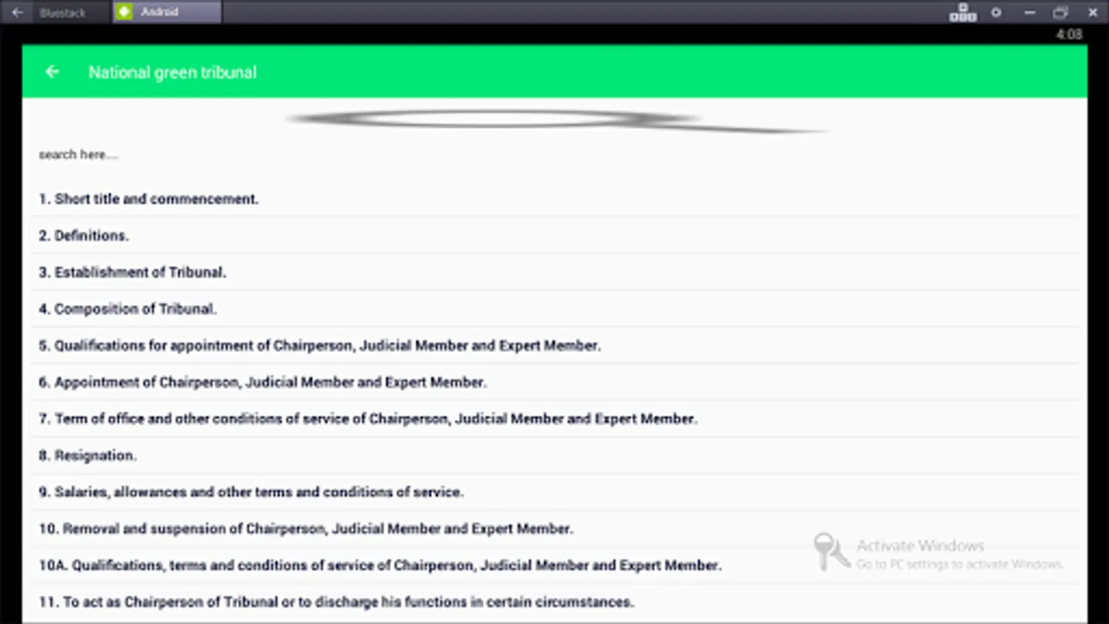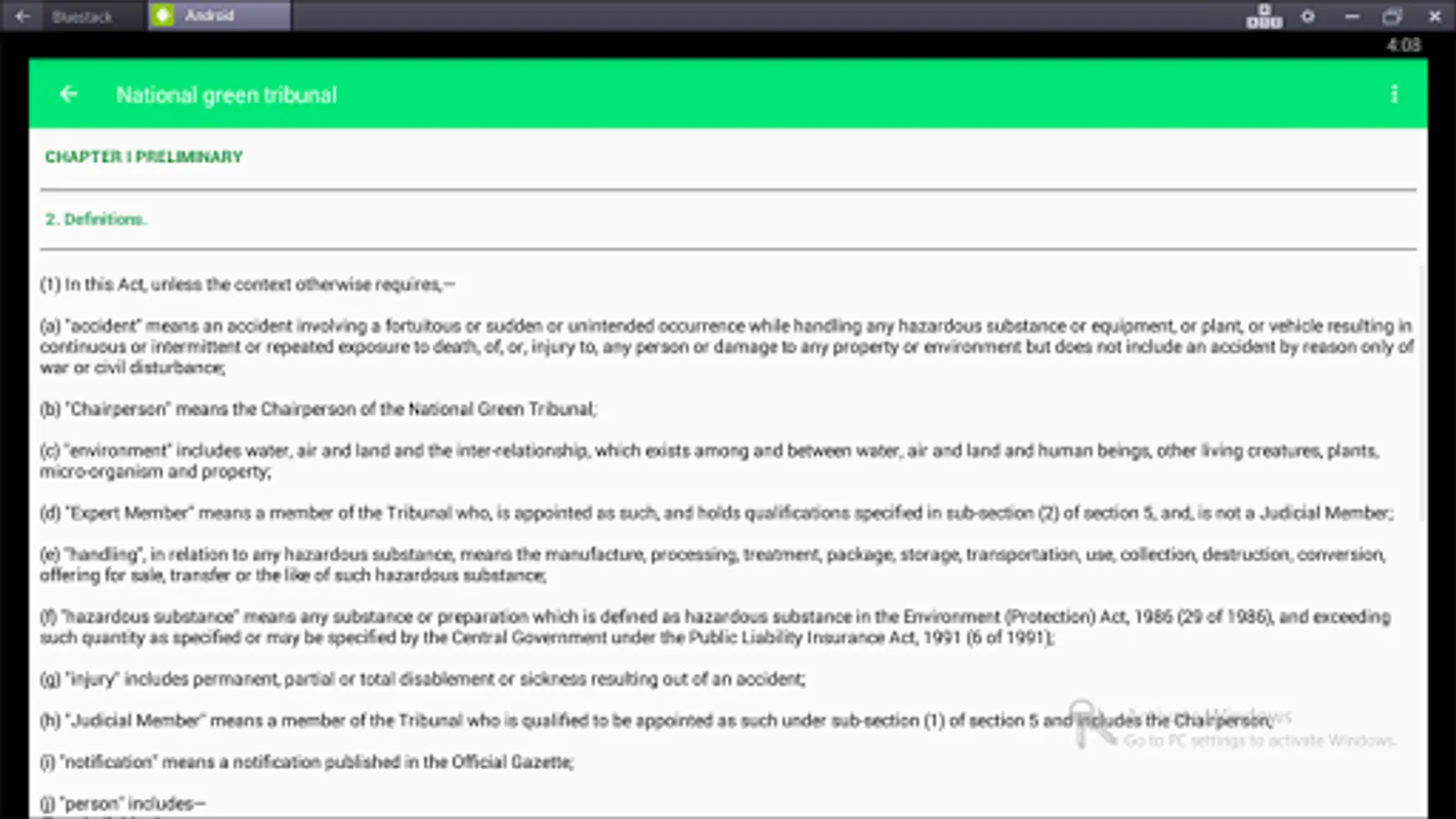 This app is design for the student. It have all the materials which required to a student. It is divided into three parts in which first part contains the overview of the National Green tribunal Act and the second part contains the bare act of Ngt act with latest amendment and the last part contains the case laws.