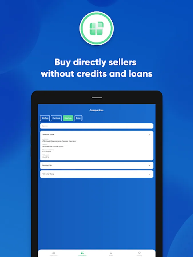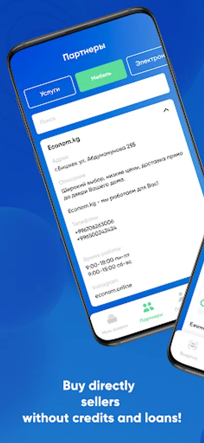 - the choice of goods and installment terms is carried out online from the list of platform partners. You can choose a partner located in your city, find out a partner location in order to rate a products before buying and personally negotiate on the terms of installments.