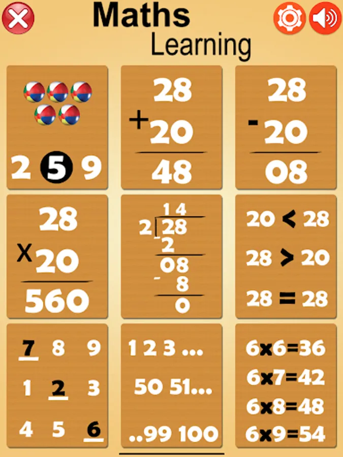 Counting Mode: Practice counting objects displayed on the screen and select the correct answer from the given choices. This mode helps you recognize numbers from 1 to 100 with corresponding words, aiding in foundational number sense.