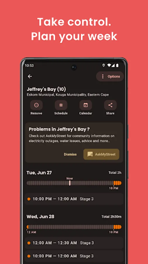 Get loadshedding push notifications and predictions. And use AskMyStreet to update and support your community :)