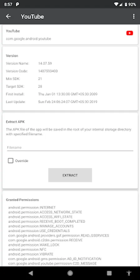 This is primarily developed for developers to get app specific informations and get APK file of any installed application.