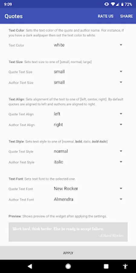 ★ Customizable: You can change fonts, color, size, alignment and style of quotes which suits your home screen.