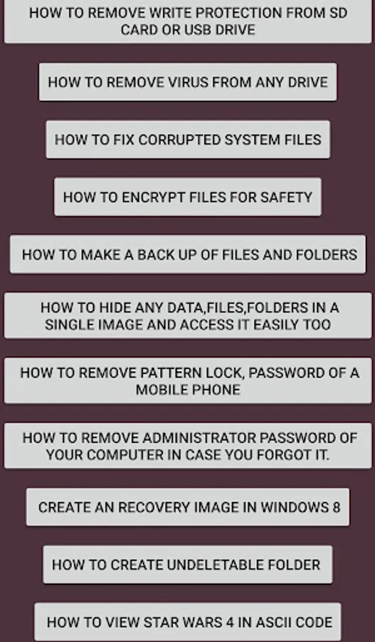 This app is designed in such a way that, most helpful commands that are available in command prompt are taken out.