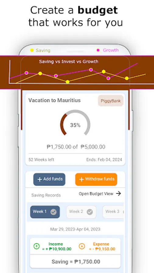 - Visual Presentation: Gain clear insights into your financial progress through visually appealing graphs and presentations. Easily visualize your savings journey and stay motivated.