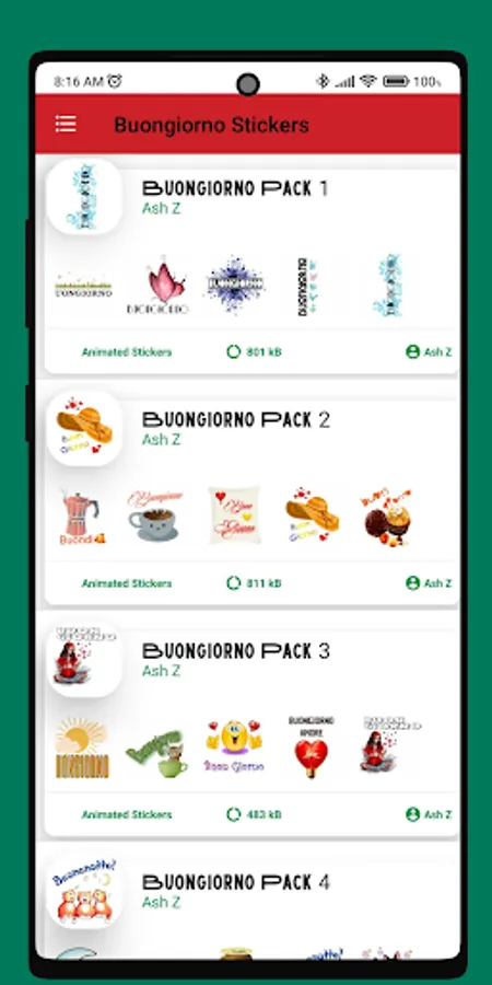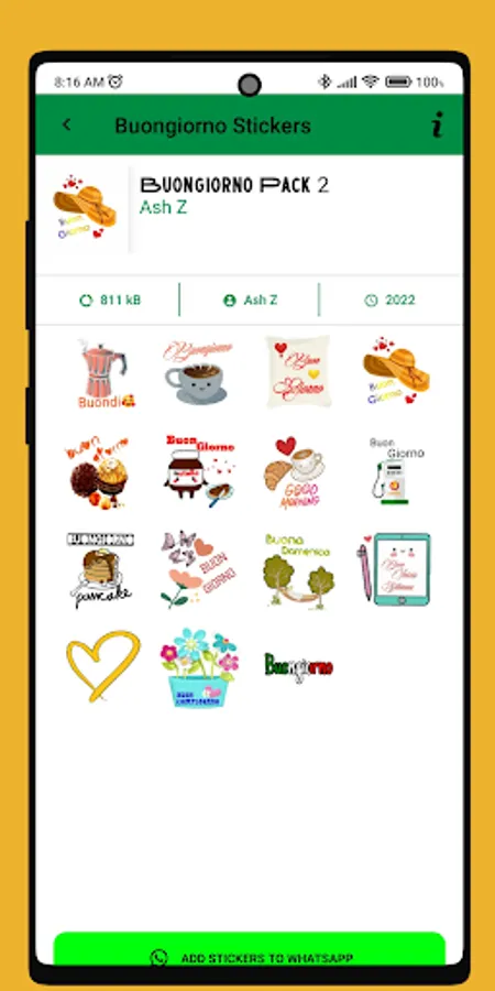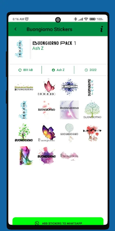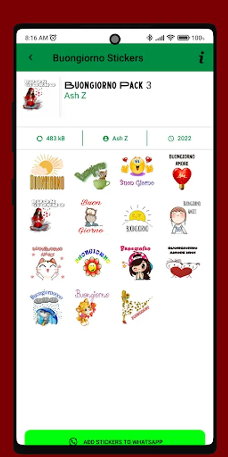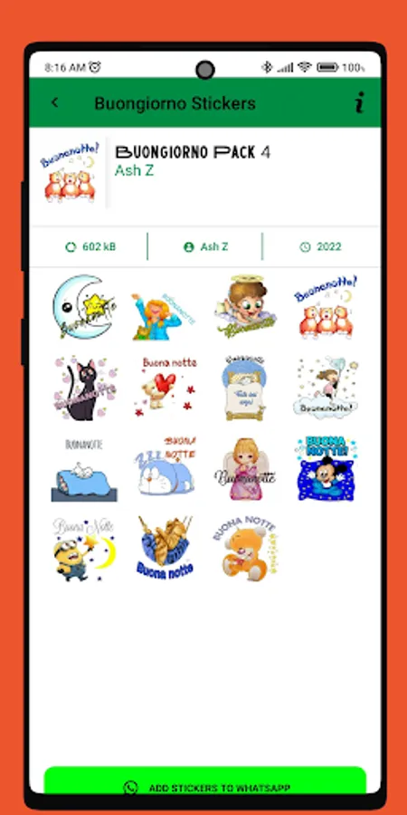 l'app contiene Buongiorno eBuonanotte Wastickersapps animati e Trash Italiano Stickers,