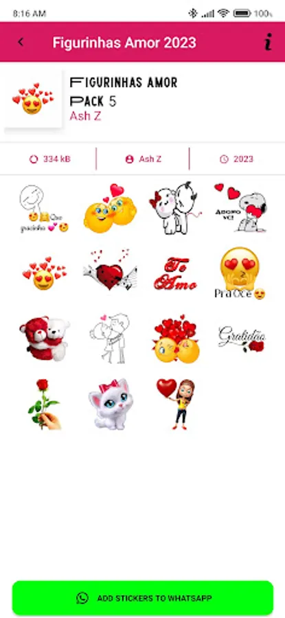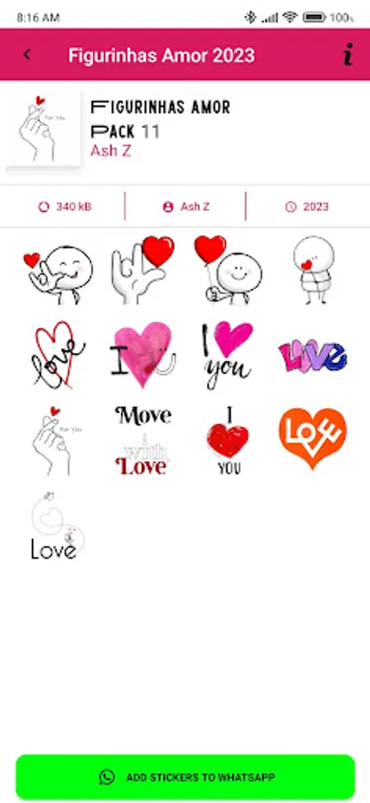 You can share 100+ stickers in this app, various stickers which include both Heart Meme Stickers and Love Stickers.