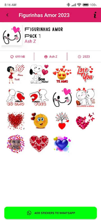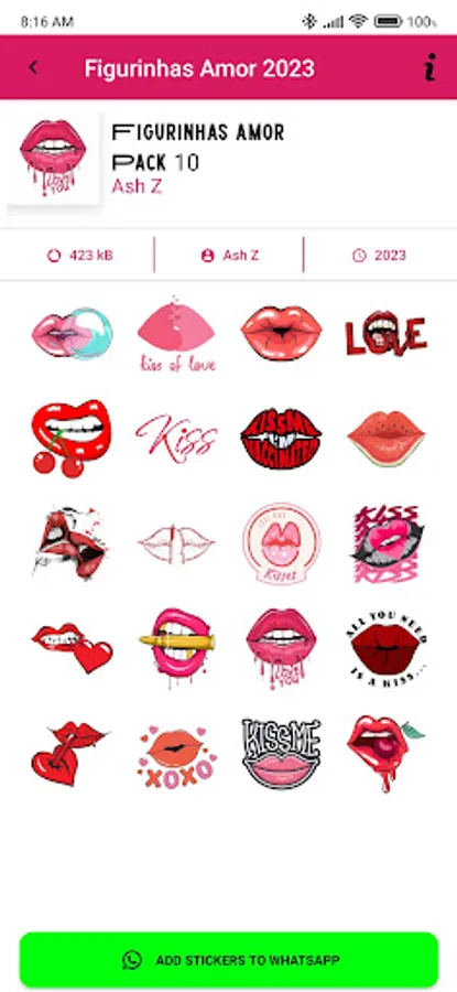 Everything you need to express your feelings is found in this small app that we don't forget to also put Love Stickers and Love Stickers memes.