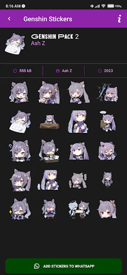 Have fun with these fantastic Genshin Impact stickers, static or dynamic. Send them to your family and friends!