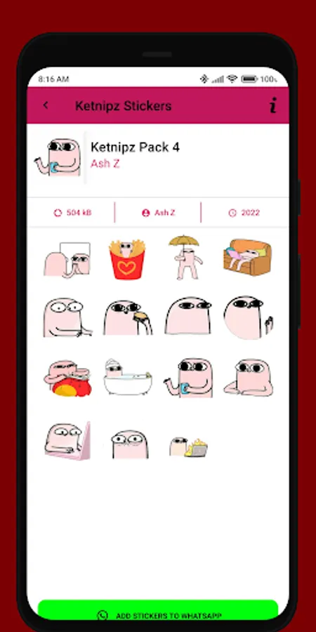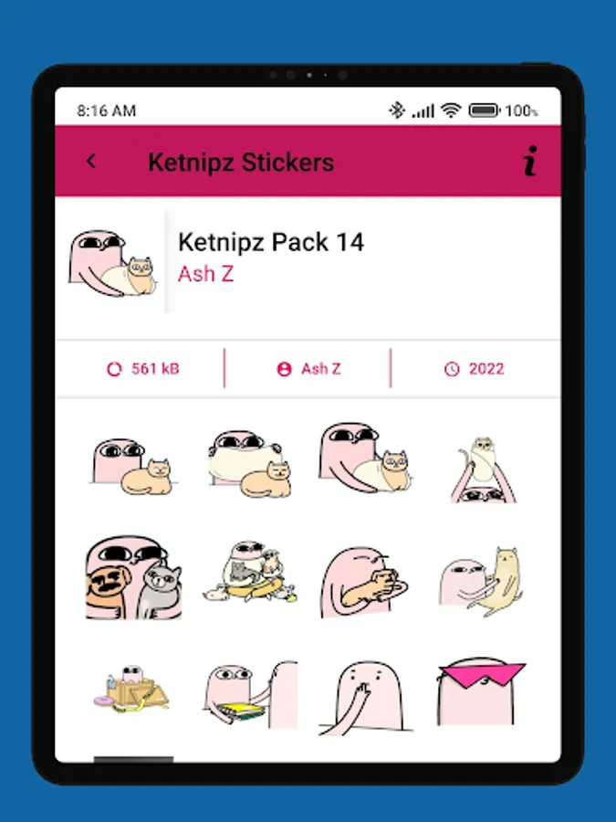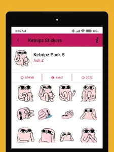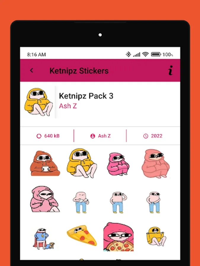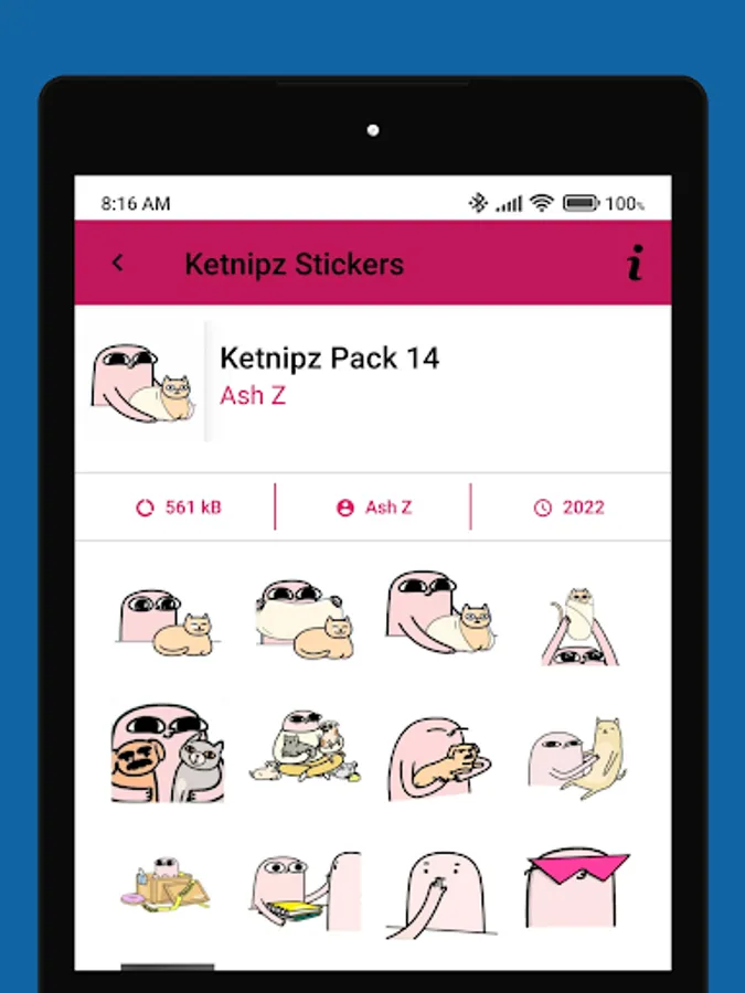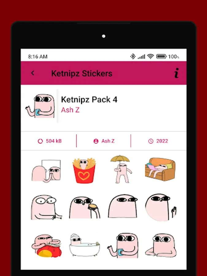 Ketnipz stickers WASticker, you can share it with your friends. Ketnipz stickers and Love stickers and stickers de buenos días y stickers and stickers de amor and romanticos stickers de buenas noches can express your love to your beloved or loved one. Roses and other charming flowers will pleasantly surprise the recipients. Funny emoji will make the friendly conversation more exciting, and animated smileys will make you smile. Stickers will help you express your emotions that are difficult to express verbally. In addition, we will constantly update new stickers and GIFs. We also plan to diversify the features of our application in the future. Please feel free to take advantage of these benefits of our application now.
