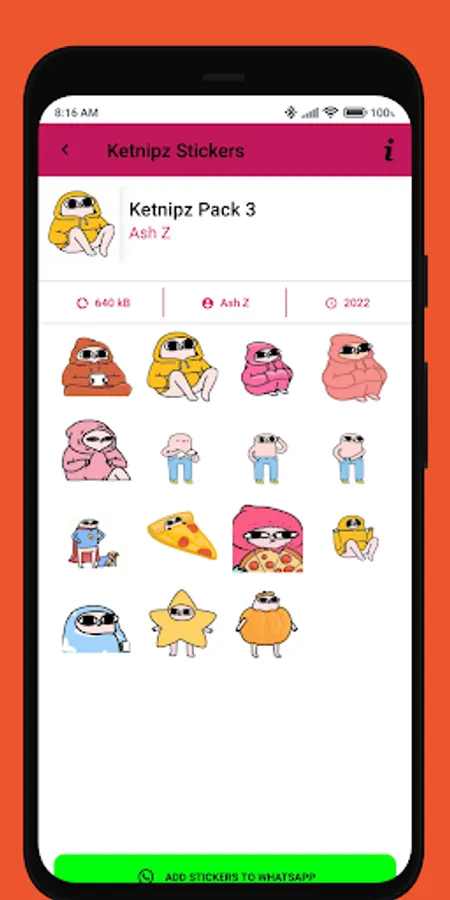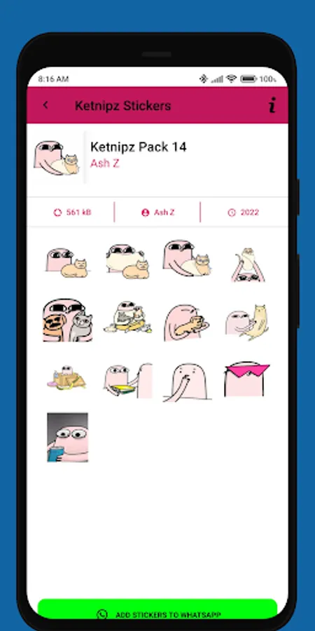 The app has the cutest variety of fun emoticons and cute emoji to add. We have stickers with kids, hearts, gifts, cats 🐱, dogs 🐶 and on birthdays, good morning stickers and good night stickers, Happy New Year 2023. As well as everyday stickers Hello and Good evening, and even stickers for some holidays like Ketnipz stickers and flork memes stickers, New Year's Day 2023. WASticker offers you stickers to use for various events.