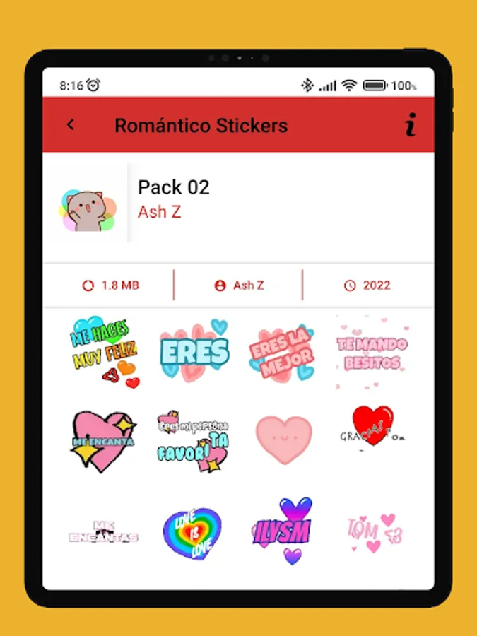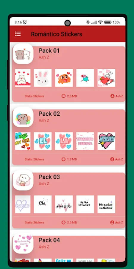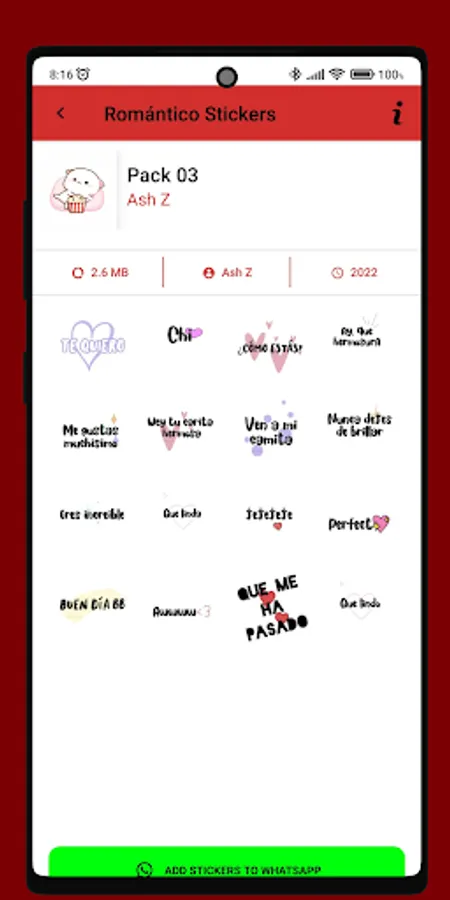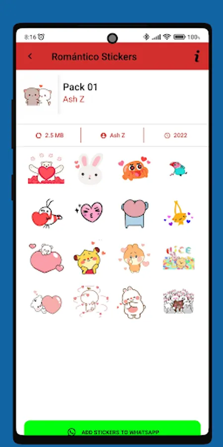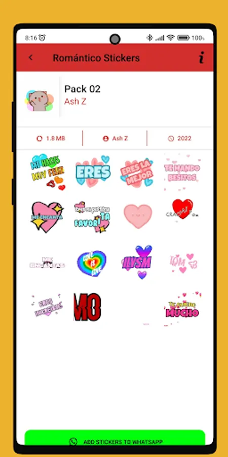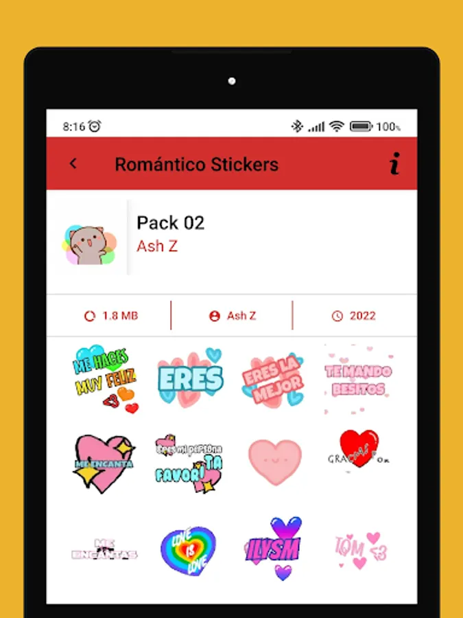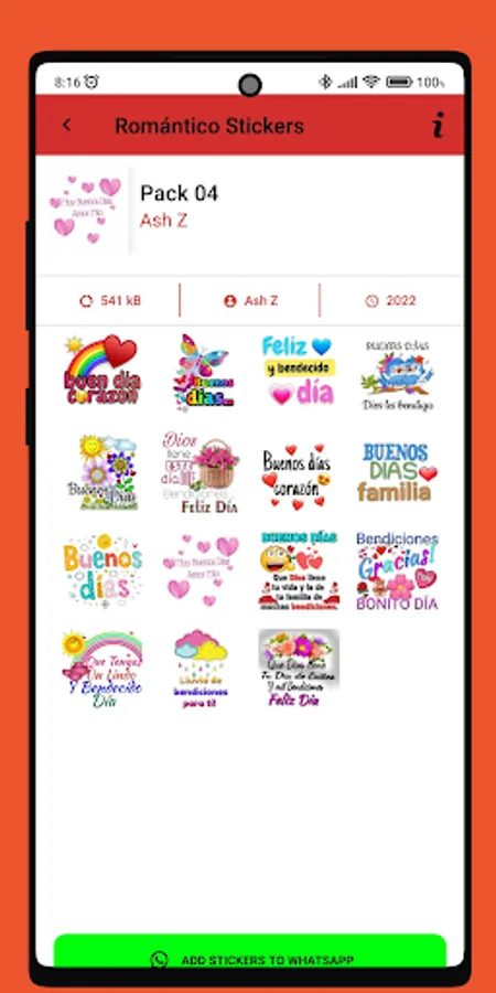 La aplicación contiene una gran colección de paquetes de pegatinas de amor romántico, exprésate usando nuevas pegatinas bonitas para WhatsApp 💘