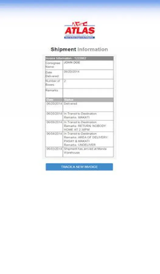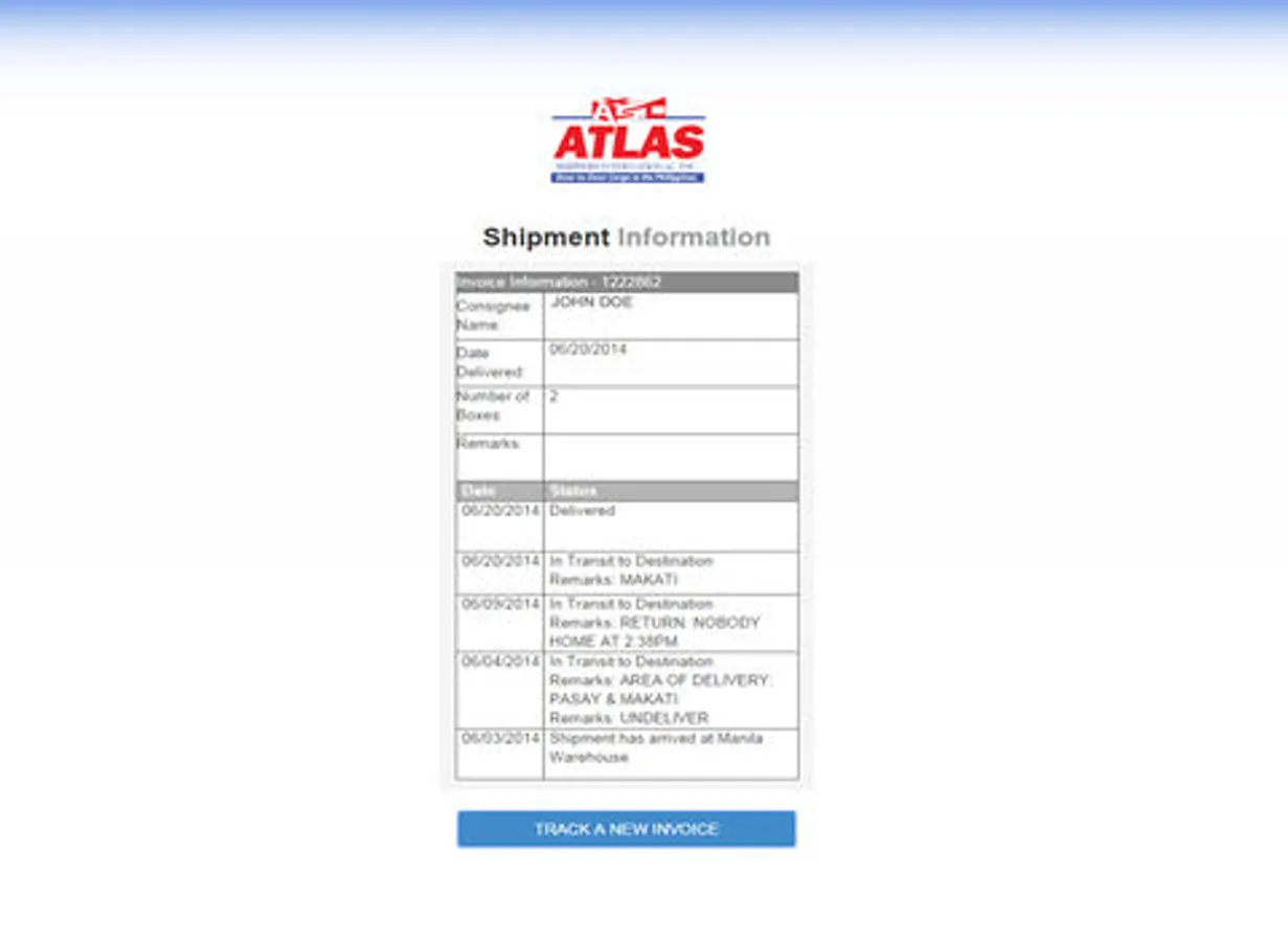 Real-time Invoice Online Tracker for ATLAS customers only.