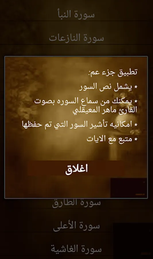 تطبيق يساعدك على قراءه وسماع سور جزء عم