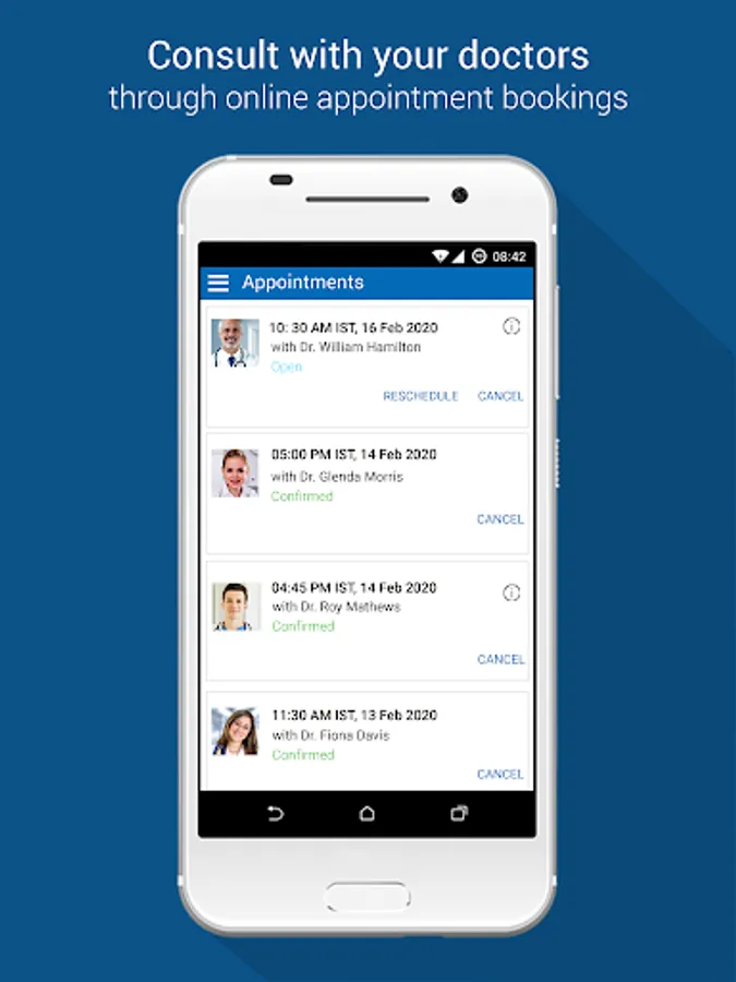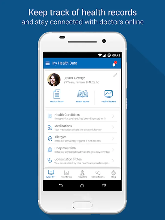 The app allows patients to: