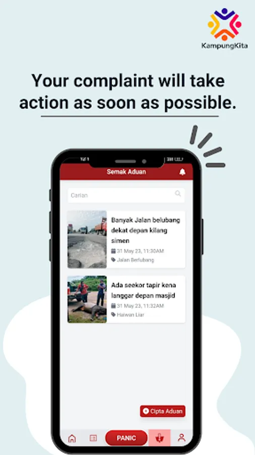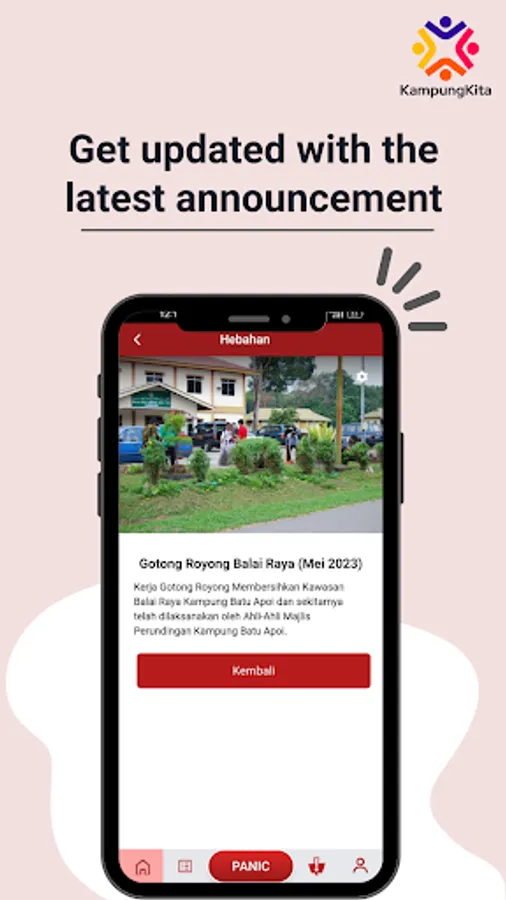 Kampung Kita is a mobile application dedicated to the community of one place. It provides a convenient and accessible platform for people to access resources and assistance. It allows for quick and efficient communication, enabling people in need to connect with volunteers, organizations, or resources promptly.