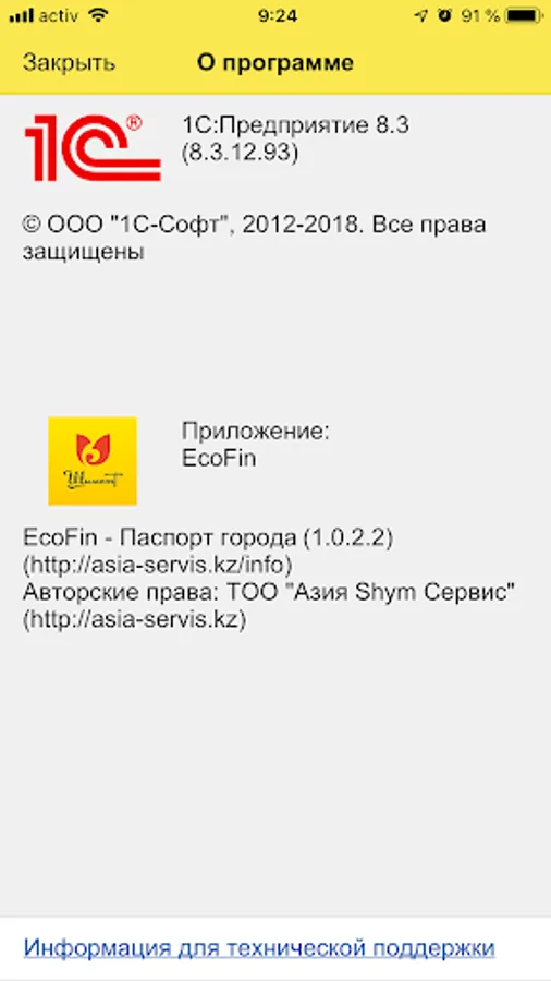 The application is designed to view and manage user instructions, monitor city development indicators in the 1C: EcoFin information base from a mobile device via the Internet. The application is a client and can not work offline.