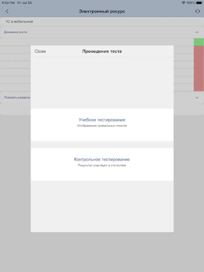Application for preparation for testing based on the "1C: Enterprise 8" configuration "E-learning"