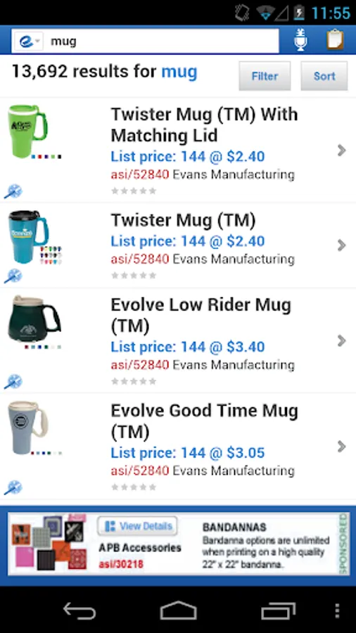 Filter product searches by supplier, color and price and sort results by price, cost, ASI number and more!