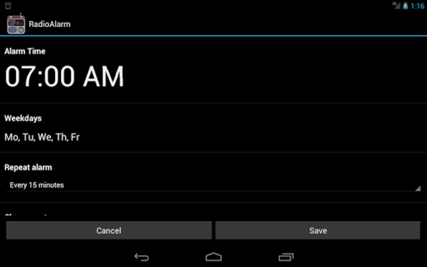 This app is free, so don't hesitate and get your alarm clock radio on your mobile phone!