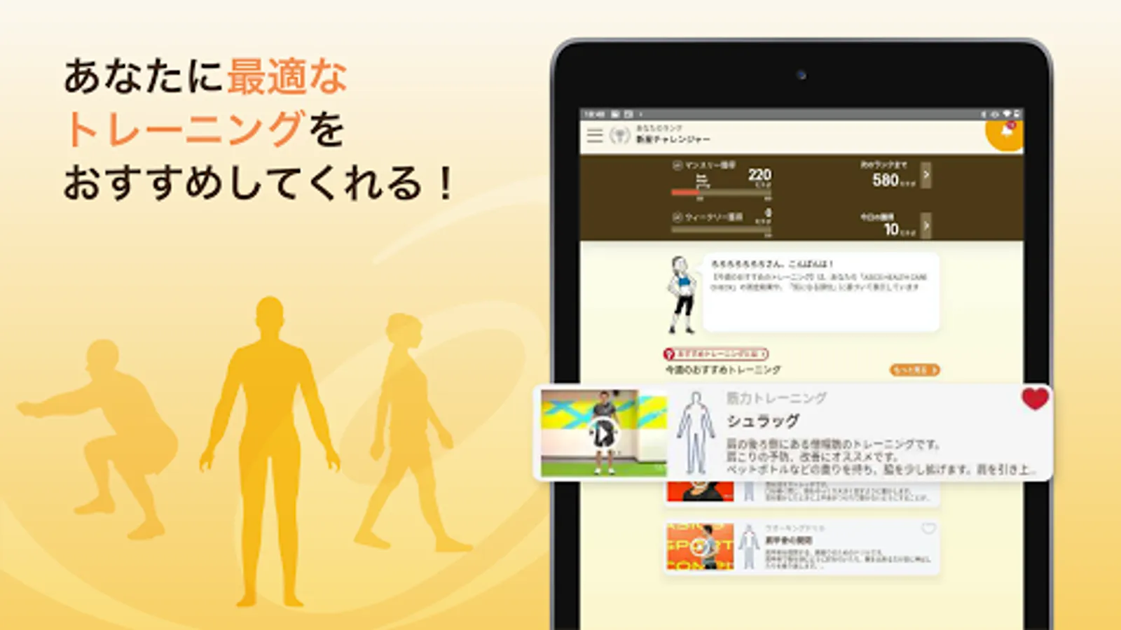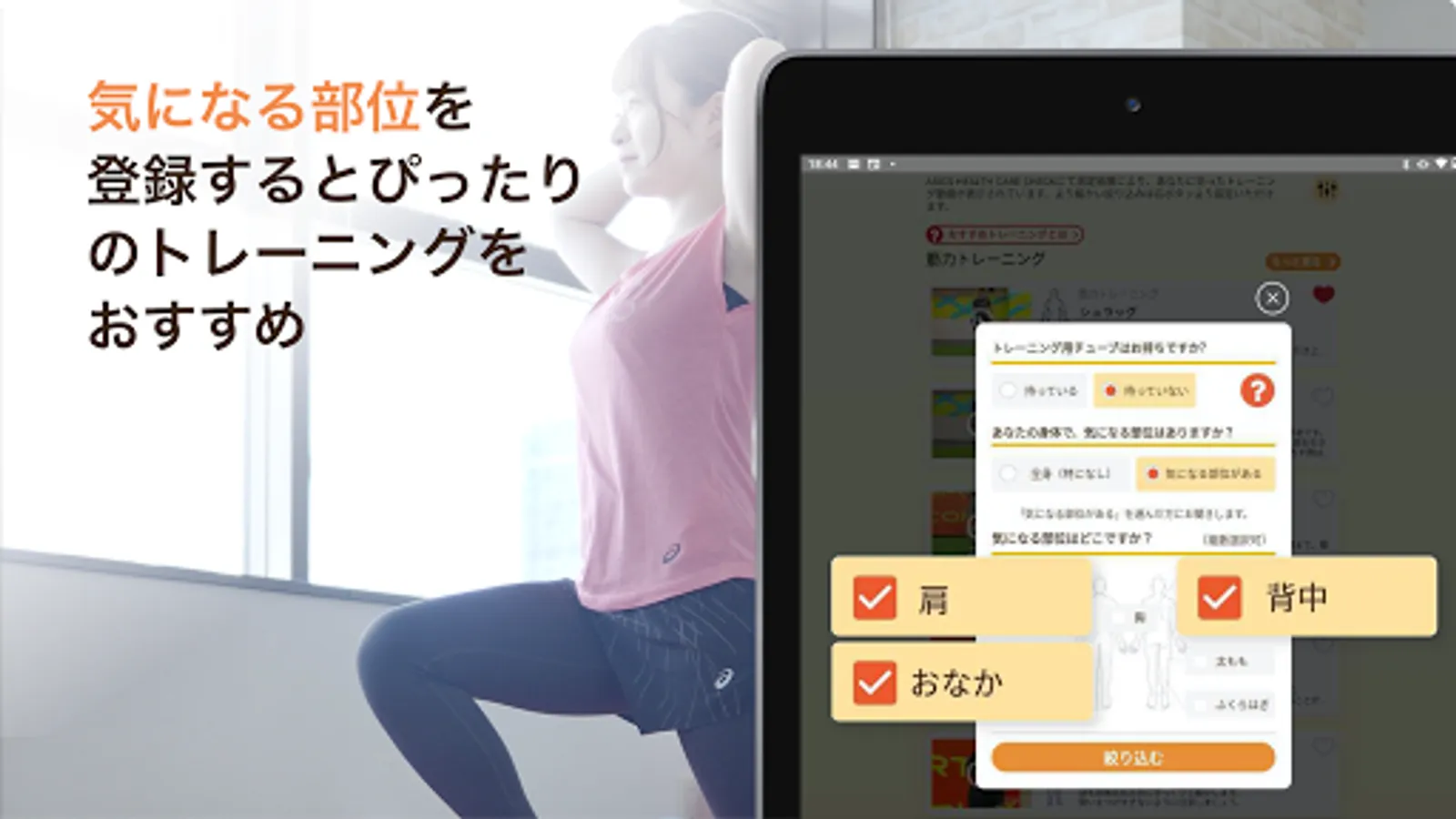 According to the results of ASICS HEALTH CARE CHECK and your "parts of concern", we will provide you with an easy-to-understand video of the optimal "health improvement exercise" customized for each person.