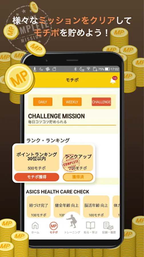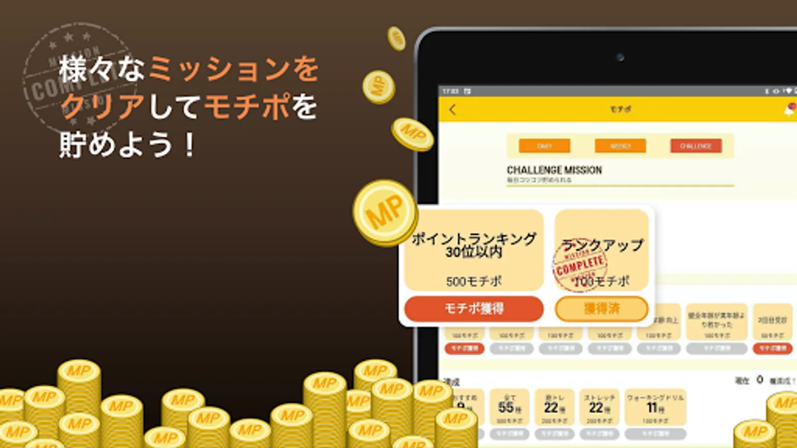 You can get points "Mochipo" by taking health improvement actions such as training.
