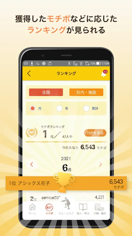 In addition, you can see the "ranking" of motivation and the number of trainings, so you can enjoy training aiming for higher ranks.
