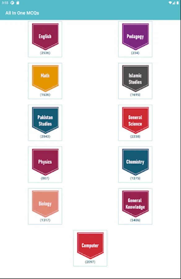 This app contains collection of MCQs which will helps students and job seekers to prepare for various exams/tests like NTS, PTS, CTS, OTS, ETEA, Federal, Punjab, KP, Sindh, Balochistan, AJK Public Service Commission tests, Pakistan Army, PAF, Navy, Wapda, Railway, Banks and other competitive exams. The collection are divided into the following 11 different categories;