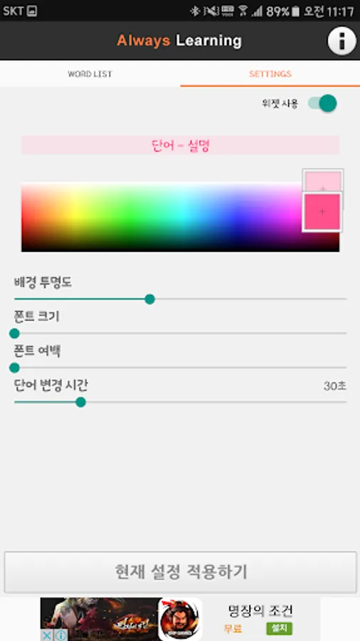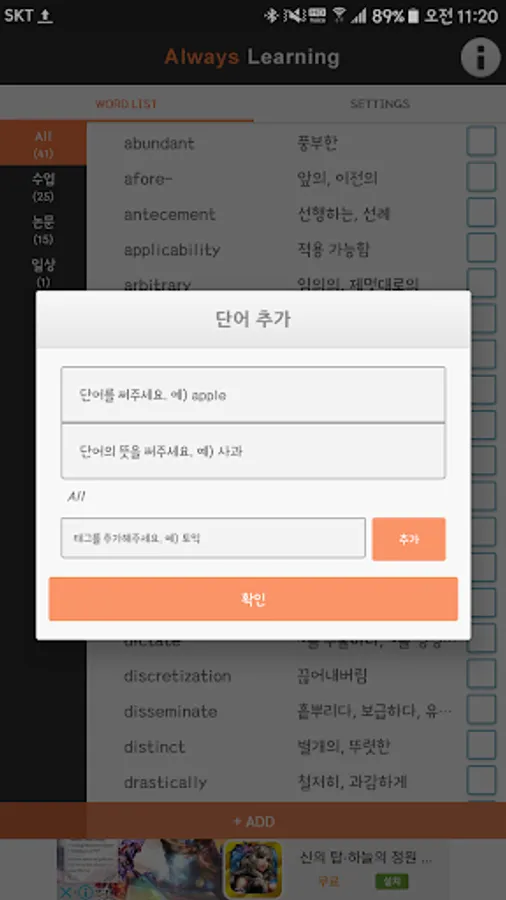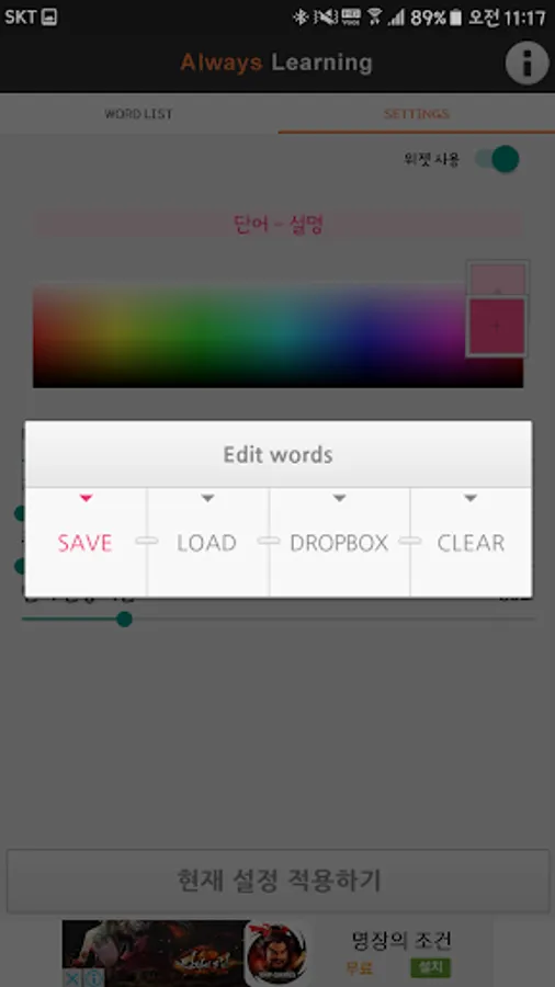 - Vocabulary backup (sdcard / AlwaysLearning)
