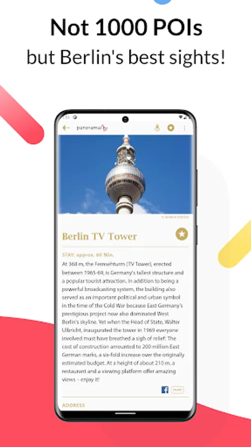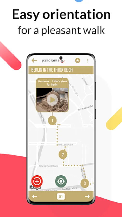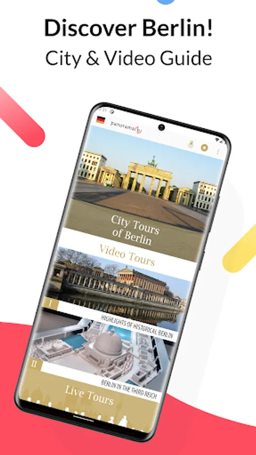 Discover Berlin your way: Our free of charge tours offer a combination of audio and video clips as well as numerous historical photographs, thus providing an exciting and informative way to explore the city. An integrated map with GPS navigation will help you find points of interest. You will also receive an integrated city guide with short descriptions of important sights and museums.
