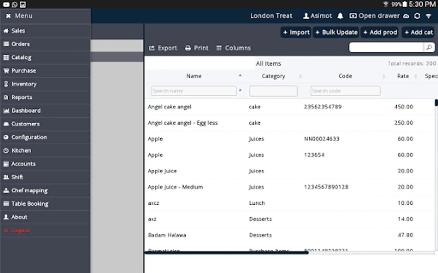 Asimot is a Cloud Based POS, Inventory management and accounting system that can be used at a café, restaurant, retail store, coffee shop, bar, beauty salon, grocery store, fashion boutique, and in many other areas.