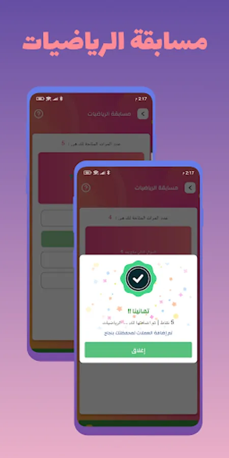 * Mathematics Competition: It consists of simple mathematics questions with several answer options. All you have to do is put the correct answer to win coins, and the number of coins varies from one question to another.