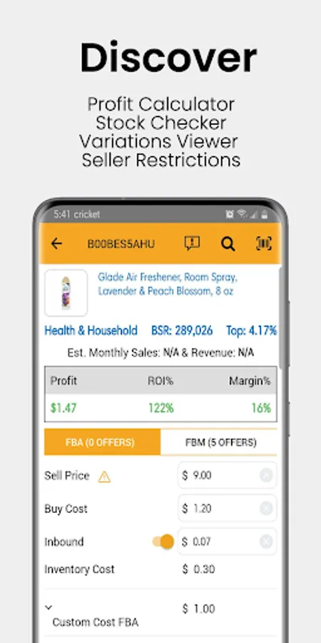 An Amazon product research mobile app that features a built-in UPC scanner using your mobile app camera. Features include: FBA/FBM profit calculator, variations view, stock checker, seller restrictions checker, hazmat detector, and an IP claim notifier. Please review the requirements section before downloading this app.
